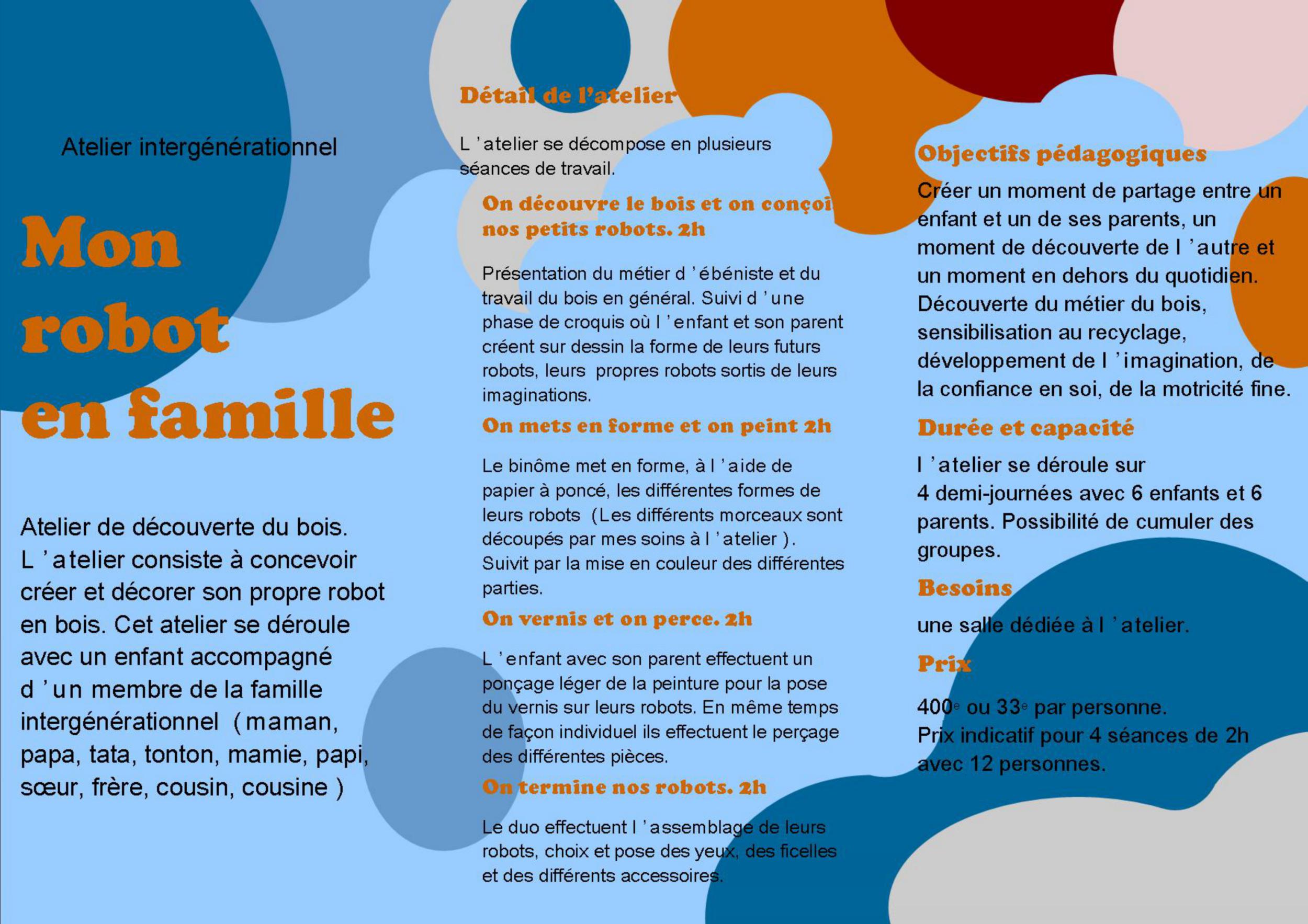 Différents ateliers destinés aux crèches, aux maternelles, aux écoles primaires, aux adolescents et à l'intergénérationnel.